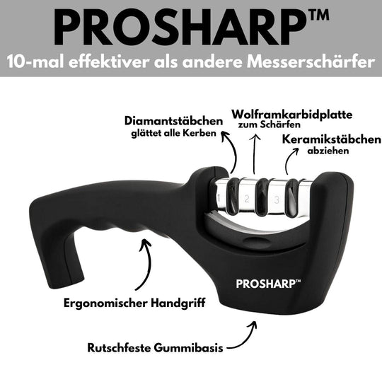 ProSharp - professioneller, ausgezeichneter Messerschärfer mit 3 Stufen - Keramikstein