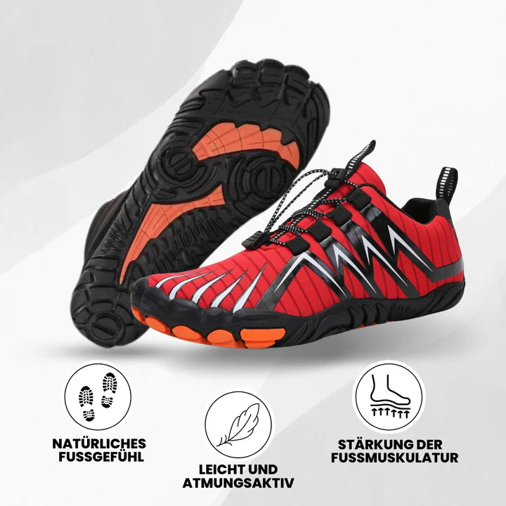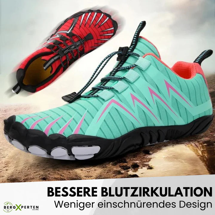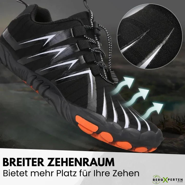 Ich bin beeindruckt von der Griffigkeit der Sohlen - selbst auf unebenem Gelände habe ich einen sicheren Stand.