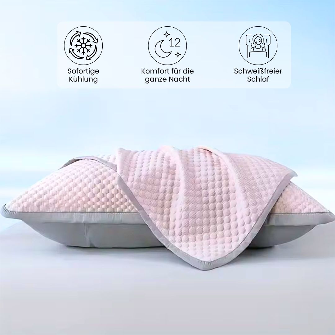 Der DreamChill Kissenbezug sorgt für angenehme Kühlung in der Nacht – ganz ohne Technik oder Gel. Durch das atmungsaktive Material wird überschüssige Wärme effektiv abgeleitet, sodass du selbst in heißen Sommernächten ruhig und trocken schläfst. Ideal für alle, die schnell schwitzen oder unter unruhigem Schlaf leiden.