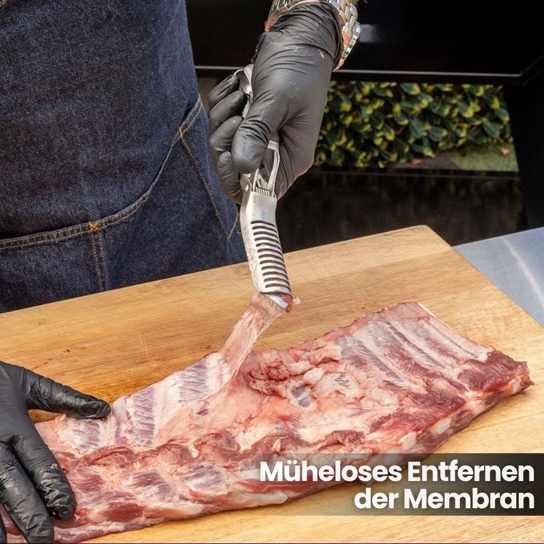Schluss mit dem lästigen Herumhantieren mit Messern oder Küchentüchern! Der Easy Rib Strip wurde speziell entwickelt, um die zähe Silberhaut mit nur einem Zug sauber von Schweine- oder Rinderrippen zu lösen. Kein Zeitverlust – nur perfekt vorbereitete Rippchen, bereit für Gewürze und Grill.