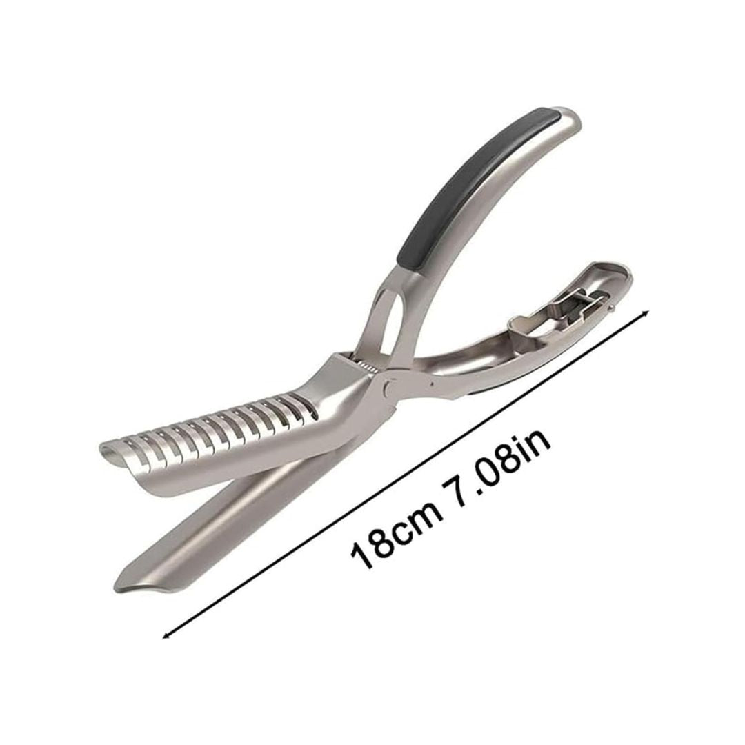 Aus langlebigem, lebensmittelechtem Material gefertigt und ergonomisch geformt, bietet dieses Werkzeug maximale Kontrolle. Die gebogene Kante gleitet mühelos unter die Haut, während der rutschfeste Griff auch bei feuchten oder fettigen Händen sicheren Halt garantiert.