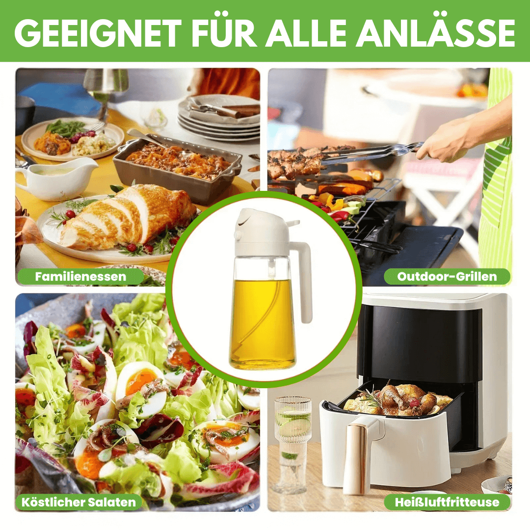 Mit unserem Ölspender gehört das der Vergangenheit an! Wir wissen, wie frustrierend es sein kann, wenn das Öl zu viel oder zu wenig aus der Flasche kommt und Ihre Küche in ein Schlachtfeld verwandelt. Deshalb haben wir den idealen Begleiter für Ihre Küche entwickelt, der Ihnen das Leben erleichtert und Ihre Gerichte auf das nächste Level bringt.