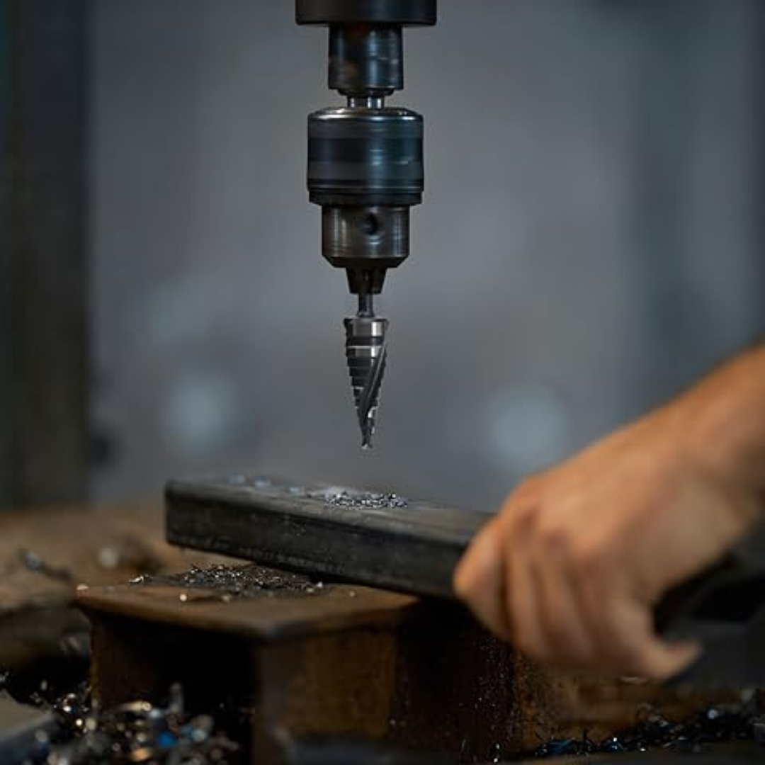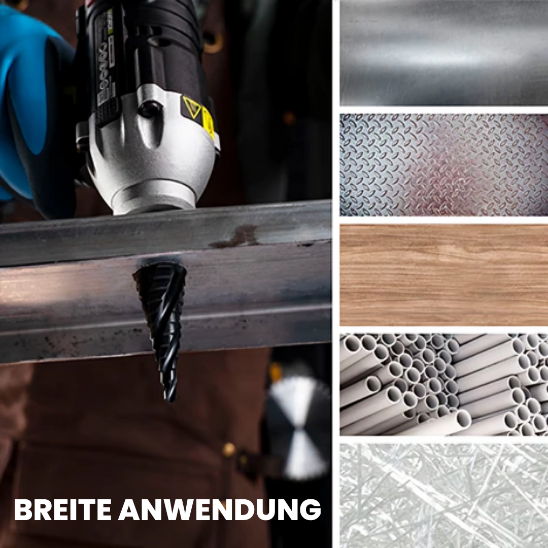 Effizientes Design: Kegelform für einfaches Bohren von Metall, Blech, Holz, effektives Schneiden von Stämmen.