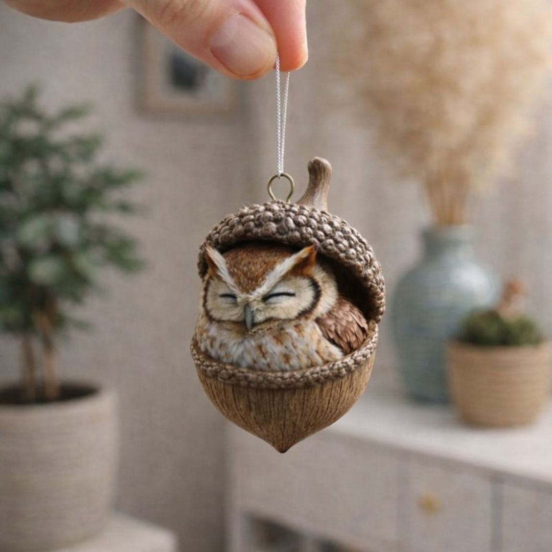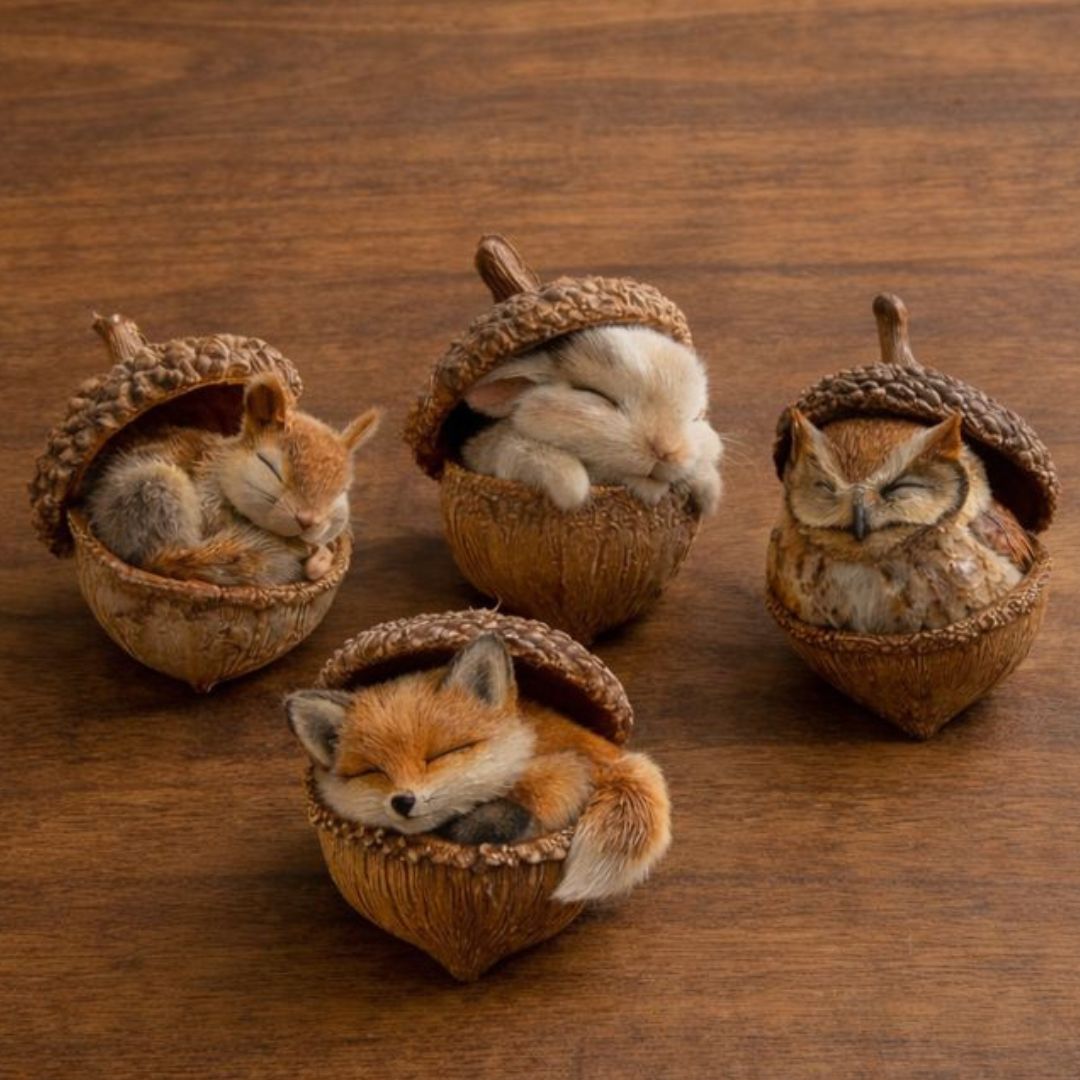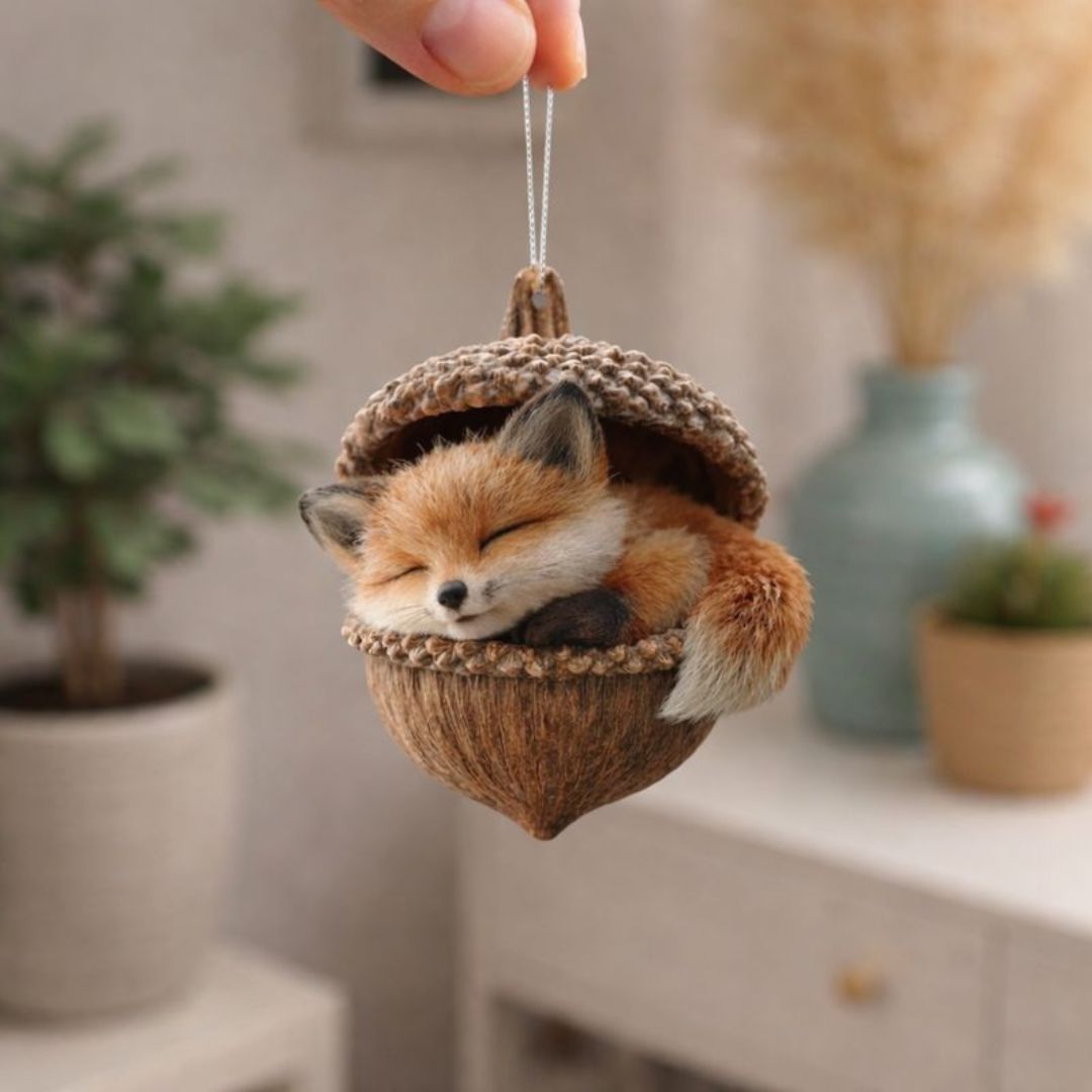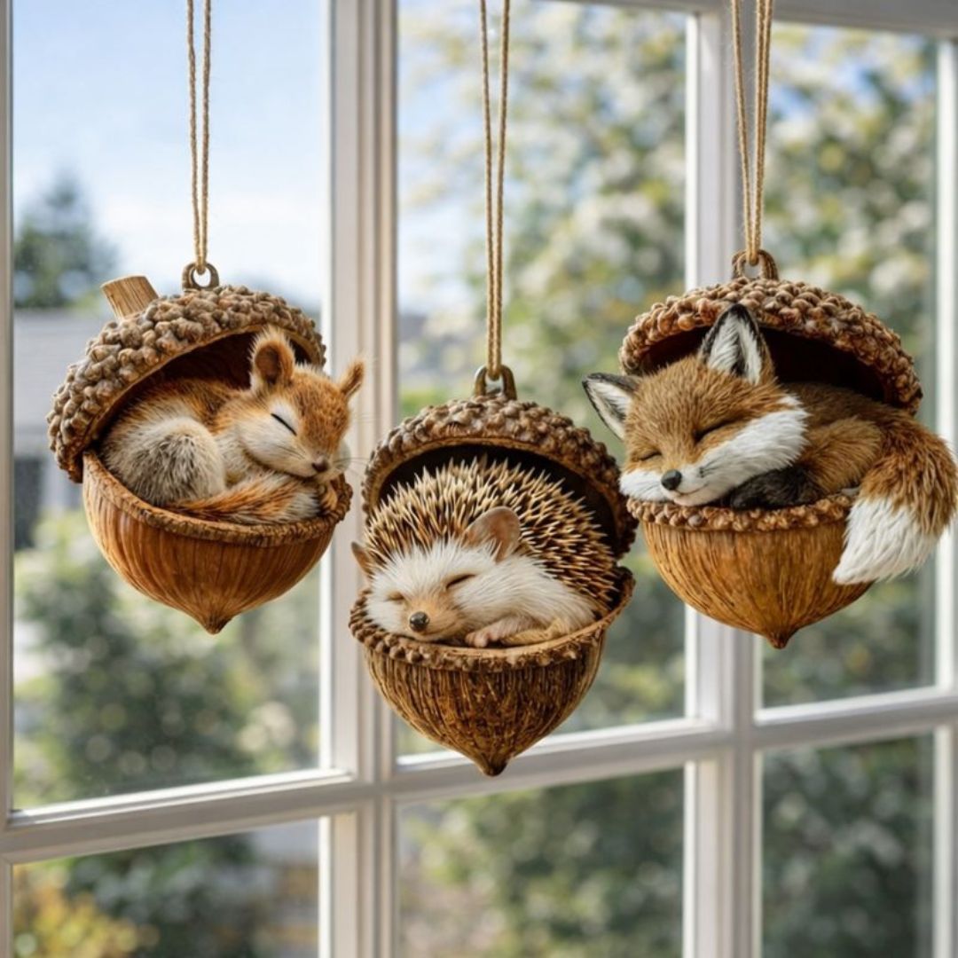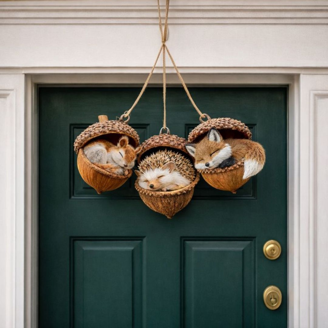 Schlafende Waldfreunde™️ Natürliche, handgemachte Wohn- & Gartendekoration zum Aufhängen bringen die ruhige Magie des Waldes das ganze Jahr über in dein Zuhause. Jede Hängedekoration zeigt ein friedlich schlafendes Waldtier, gebettet in einer liebevoll ausgearbeiteten Eichel. Das natürliche Design strahlt Wärme, Geborgenheit und zeitlose Waldromantik aus – perfekt als Ganzjahresdekoration, unabhängig von Saison oder Anlass.