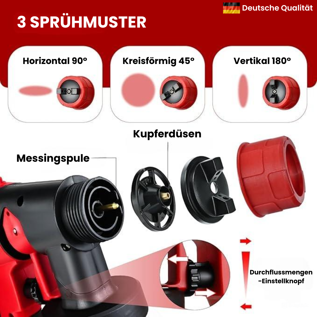 Vergessen Sie unsaubere Anstriche und ungleichmäßige Oberflächen! Mit unserer Hochdruck-Farbspritzpistole erzielen Sie professionelle Ergebnisse in jeder Situation. Die fortschrittliche Sprühtechnologie sorgt für eine präzise, gleichmäßige Verteilung der Farbe, ohne Tropfen, Flecken oder Pinselstriche.