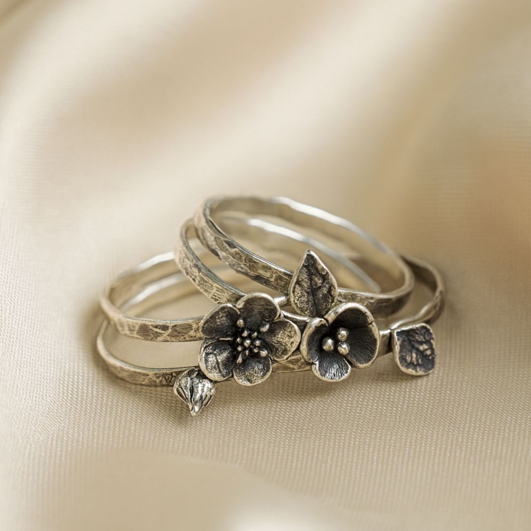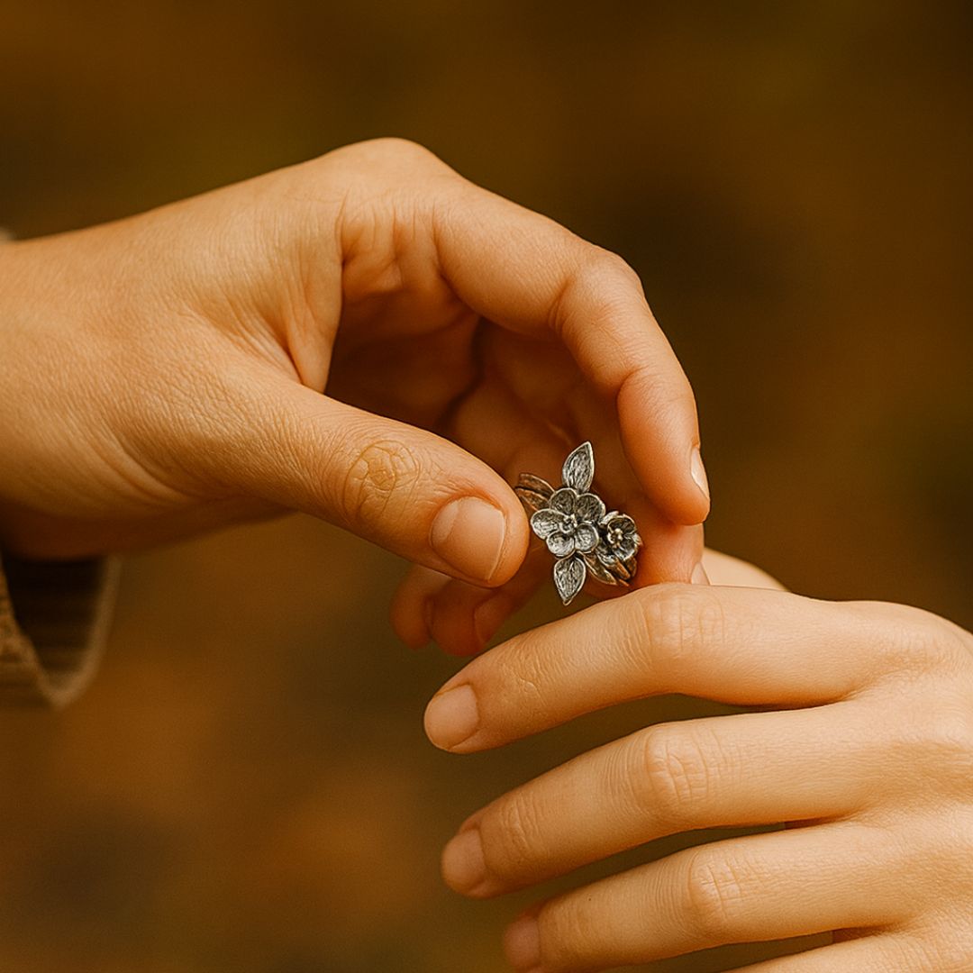 Die Blüte gilt seit jeher als Symbol für Erneuerung, Schönheit und Lebenskraft. Im Silberglanz erstrahlt diese Bedeutung noch stärker – ein Ring, der nicht nur schmückt, sondern Emotionen trägt und Geschichten erzählt.