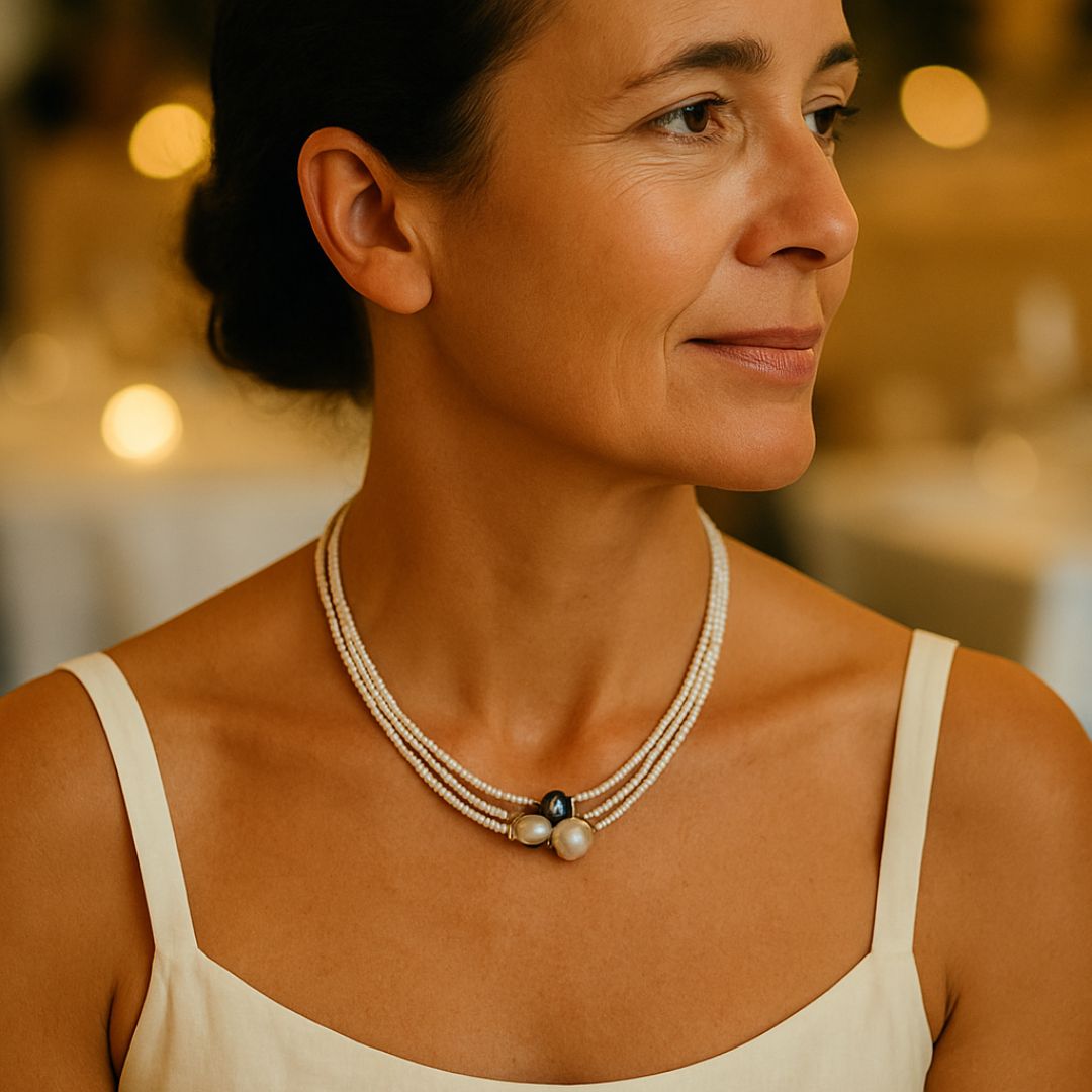 Trotz ihrer prachtvollen Wirkung ist die Vintage-Kette – Perlenzauber im Meeresglanz wunderbar leicht. Das ausgewogene Design sorgt für perfekten Sitz und hohen Tragekomfort – den ganzen Tag über, ohne zu beschweren.